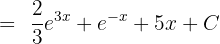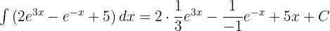 Split using the sum and difference rules and integrate each term separately. Each exponential term has a linear exponent, so the reverse chain rule applies to both: