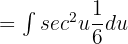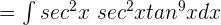Suppose u = tan x, then , and du = sec^2 x dx: