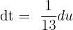 In this example, we will use substitution to find the integral. Suppose 13t + 9 = u.