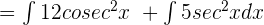 We know that cos x dx = tan x + C. Hence, we will substitute this value in the above function: