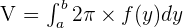 The volume V of a solid produced by revolving the region bounded by the function y = f(x) and the x-axis on the closed interval [a, b], where about the y -axis is given by: