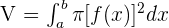 We denote the volume (V) of a solid obtained by revolving the region bounded by y = f(x) and the x-axis on the closed interval [a, b] about the x-axis like this:
