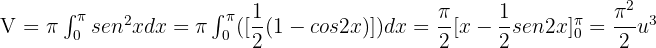 Find the volume of the solid obtained by rotating the region bounded by y = sen x, x = 0 and x = π and the x-axis about the x-axis.