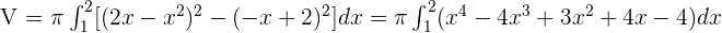 Find the volume generated by rotating the region bounded by y = 2x − x² and y = −x + 2 around the x-axis.