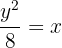 Find the volume generated by rotating the region bounded by y²/8 = x and x = 2, around the y-axis.