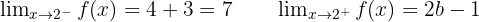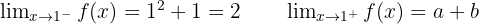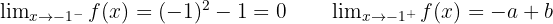 The left-hand and right-hand limits are not equal, so the two-sided limit does not exist. This is a jump discontinuity. No value of