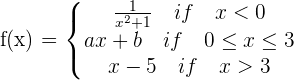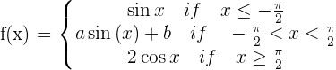 Determine a and b so that the function is continuous for all values of x.