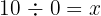 Now, let's try to divide 10 by 0. Let's assume the answer is some number, x: