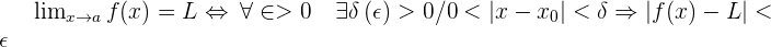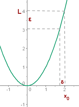 It is said that the limit of the function, f(x), as x tends to x0, is L. If a real positive number is set, ε, greater than zero, there will be a positive number, δ, depending on ε, for all the values of x that differ from x0 that fulfil the condition |x - x0| < δ, and holds that |f(x) - L| <ε.