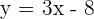 A line forms a triangle with the axes where the length of the leg formed by the x-axis is twice the length of the leg formed by the y-axis. If the line passes through the point , what is its equation?