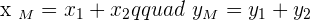 The midpoint of this line is represented as M in the above picture. Since you have both points' coordinates, you can now use the midpoint formula to find the coordinates of M. Either you can use the above formula directly to find the midpoint or you can break it into two steps. Both methods are easy but the second method is a bit long but there is less probability of error. The first step is to add both points' x coordinate and then do the same with the y coordinate.