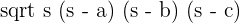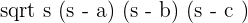 Here, s is the semi perimeter and a, b and c represent the sides of the triangle.