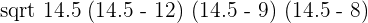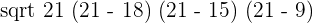 Now, we will substitute this value of semi perimeter in the below formula to find the area: