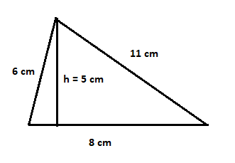 In the above triangle, the lengths of two sides are equal, hence it is an isosceles triangle. We do not know the height of the triangle, so we will use the above discussed formula to compute its area.