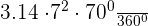 Suppose the angle created by two radii of the above circle is equal to 70 degrees and the radius is equal to 7 cm. What is the area of the sector?