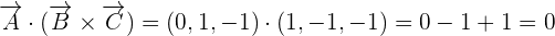 Hence, we can conclude that the point A, B, and C are coplanar because the scalar triple product of the three vectors is equal to zero.