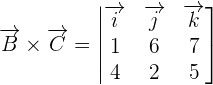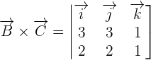 First, we will find the cross product of by using a determinant. The elements of the determinant will be the coordinates of these vectors.