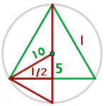 The above formula can be used to find the side of an inscribed equilateral triangle. We have the side now, let's find the base (adjacent). An equilateral triangle base is equal to