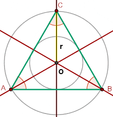 Or, you can use the above formula to find the apothem of an inscribed equilateral triangle.