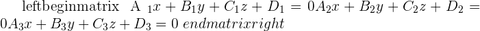 The best and possible way to learn about their intersection is using the rank method. Below is a small matrix of three planes.