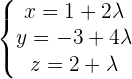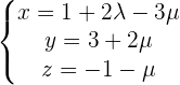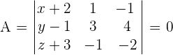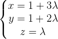 Determine the equation of the plane that contains the point A = (2, 5, 1) and the line: