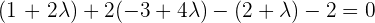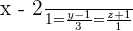Find the intersecting point between the plane x + 2y − z − 2 = 0, the line determined by the point (1, −3, 2) and the vector