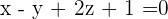 Find the equation of the plane that passes through the point P = (1, 1, 1) and is parallel to: