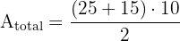 Step 1: Calculate the total area of the trapezoid B = 25, b = 15, h = 10