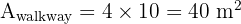 Step 2: Calculate the area of the walkway The walkway is a rectangle with a width of 4 m and a length equal to the height of the trapezoid (10 m).