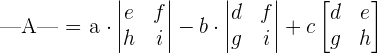 The matrix of the order three has three rows and three columns. The determinant of such a matrix is given by the following formula: