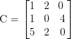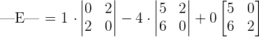 We will break this matrix into smaller 2x2 matrices, by looking at the first row and multiply each element with the determinant of 2x2 matrix. The 2x2 matrix will be obtained after eliminating the row and column in which the elements 1, 4 and 0 are present,