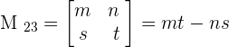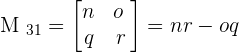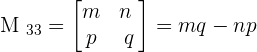 Write the matrix in the following form. The below matrix is obtained by eliminating the corresponding row and column of each element.