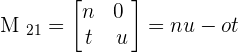 To find the minor of a matrix, we take the determinant of each smaller matrix, obtained by deleting the corresponding rows and columns of each element in the matrix. Since in the large matrices, there are many rows and columns with multiple elements, therefore we can make many minors of those matrices. We label these minors according to the row and column they belong to.