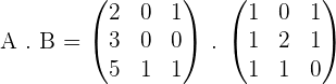 , of the product matrix is obtained by multiplying every element in row i of matrix A by each element of column j of matrix B and then adding them together.