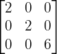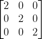 - All diagonal elements are equal to the same number (scalar). An example where the scalar is 2: