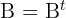 Given the matrix B below, calculate its transpose and state whether matrix B is symmetric.