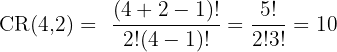 Example: There are 4 ice cream flavours. You are allowed 2 scoops, and you can pick the same flavour twice. How many variations are possible?