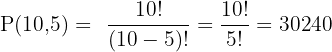 Example: In a pool of 10 balls, you choose 5. How many ordered arrangements are possible?
