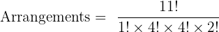 Answer: 34650 distinct arrangements of MISSISSIPPI