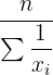 Harmonic mean | Usually used to calculate the average of ratios | ![]() |