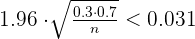 1.65 \cdot \frac{0.4}{\sqrt{n}} <0.02