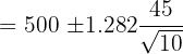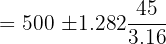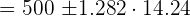 The average number of pages in 10 books on a shelf is 500. The standard deviation is 45 pages. Assuming a normal distribution, calculate 80% confidence intervals for the mean number of pages (round off to the nearest whole number) of all the books. Solution