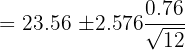 The average time taken by 12 runners to complete a round of 80 meters is 23.56 seconds. The standard deviation is 0.76 seconds. Assuming a Normal distribution, calculate 99.9% confidence limits for the mean time (round off to one decimal place) taken by all the runners to complete a round. Solution