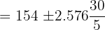 The heights of 25 athletes are measured. The average weight of an athlete is 154 cm. The standard deviation of the athlete's height is 30 cm. Assuming a Normal distribution, calculate 99% confidence limits for the mean height (round off to one decimal place) of all the athletes. Solution