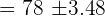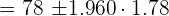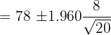 The average marks obtained by 20 students in the class in a science exam is 78. The standard deviation is 8. Assuming a normal distribution, compute 95% confidence interval for average marks of the students (round off to one decimal place) of all the students. Solution