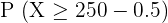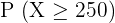 It is given that we need to find the probability that at least 250 students are registered in a sports club. Hence, we can write the probability as: