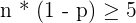 First, you should know that two calculations n * p and n * q are used to figure out whether the sample size is large enough or not. Here, n represents the sample size, p is the given probability and q is equal to 1 - p.