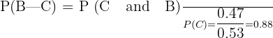 In an area, 47% of the families own a car and a bike. 53% of the families own a car. What is the probability of a family owning a bike given that it already owns a car?