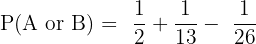 P(A or B) = P(A) + P(B) - P(A and B)