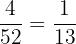 Probability of choosing a 2 from a deck =